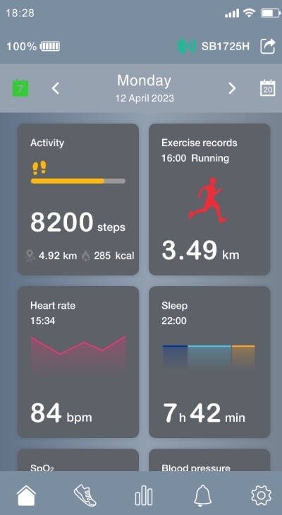 支持蓝牙手环连接,兼容多种蓝牙协议,确保与不同品牌智能手表和手环的稳定配对。